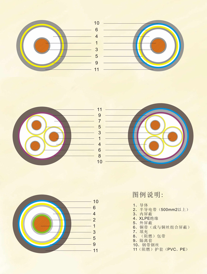 電壓等級:26/35、21/35、18/30、12/20、8.7/15、8.7/10、6/10、6/6kV